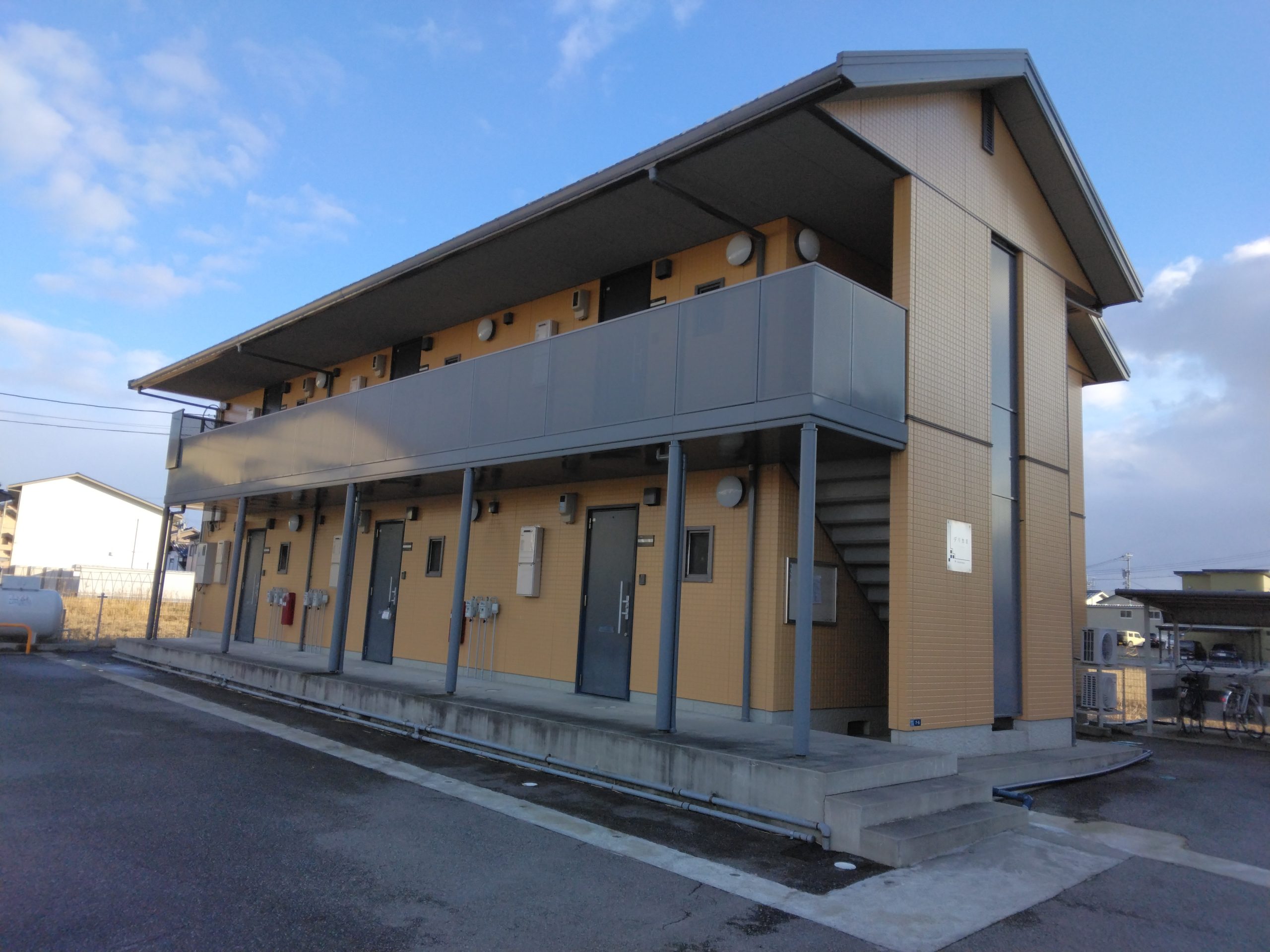 - プロパンガス、バス・トイレ別、暖房便座、シャワートイレ、エアコン、全室照明、フローリング、バルコニー、外収納庫、ウォークインクローゼット、CATV、インターネット対応、TVドアホン、駐車場あり、2階以上の部屋
