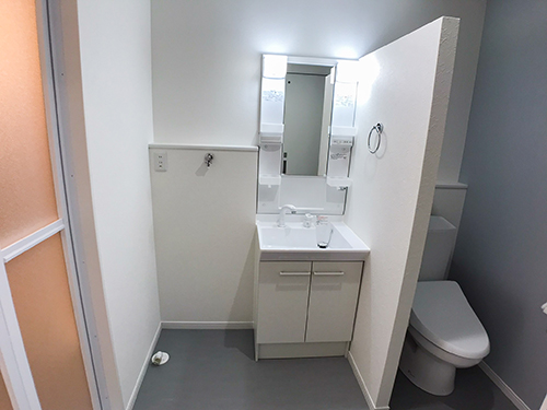 洗面化粧台、室内洗濯機置き場、トイレです。