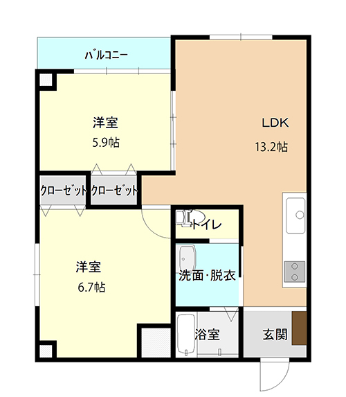 2LDK(LDK13.2帖・洋室5.9帖・洋室6.7帖)