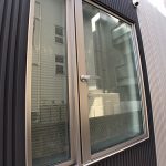 1A窓は通路側なので目隠し用のフィルムが貼ってあります。