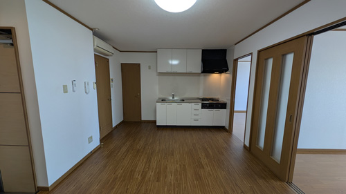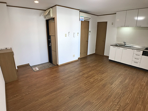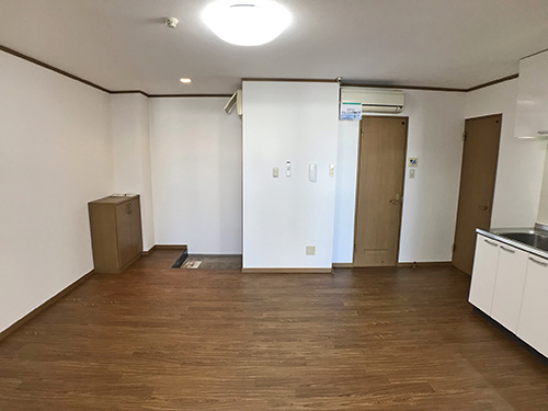 11.4帖のLDKです。シューズボックス、エアコン、システムキッチン付きです。