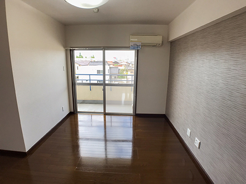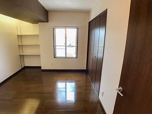 6.7帖の洋室です。クローゼット、収納棚付きです。