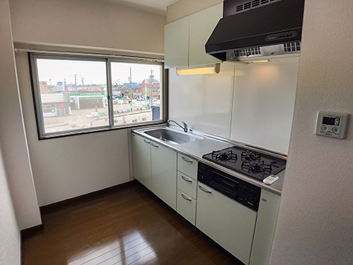 3.6帖のキッチン。ガスコンロのシステムキッチンです。