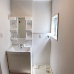 洗面化粧台、室内洗濯機置き場付きです。