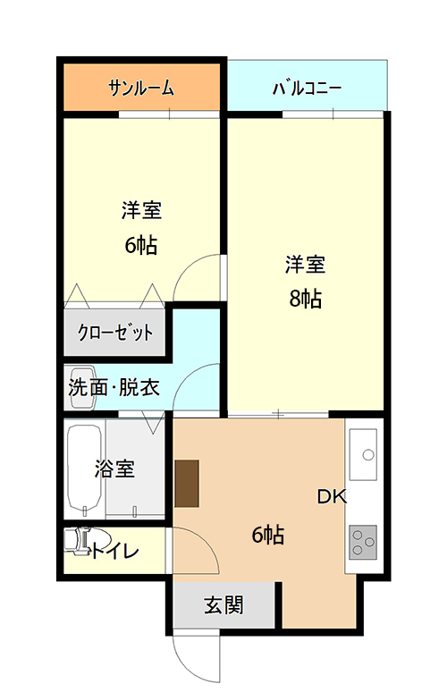 2DK(DK6帖・洋室8帖・洋室6帖)