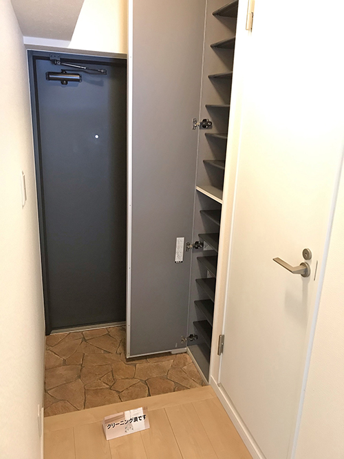 全室共通・玄関ミラードアの後ろはシューズボックスです。