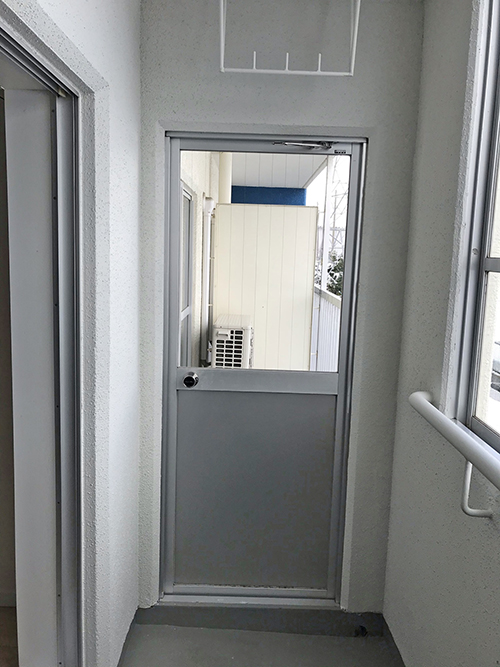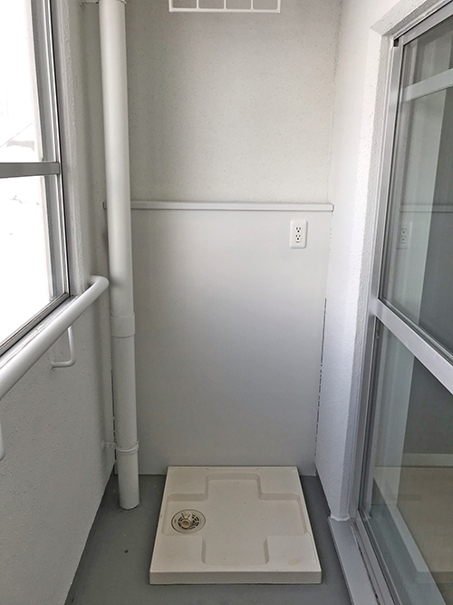 北東向きのサンルームです。室内洗濯機置き場があります。物干し金物です。