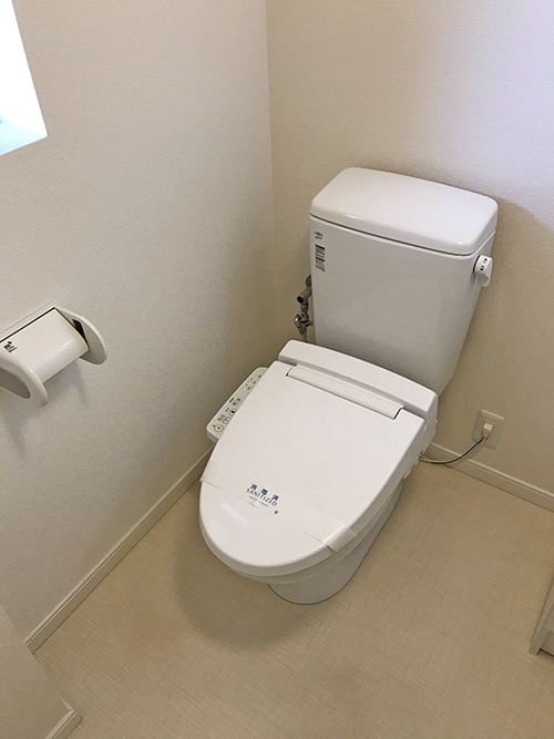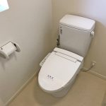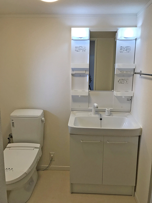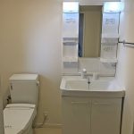 洗面化粧台、トイレです。トイレは暖房便座、ウォシュレット付きです。